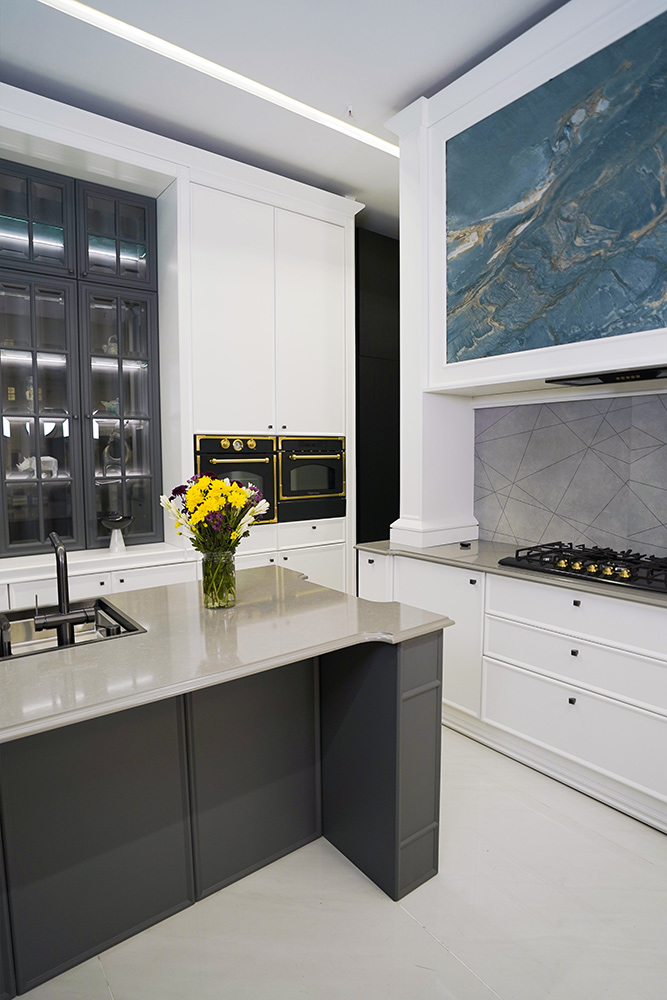 ۱. ویژگیهای ظاهری کابینت نئوکلاسیک بازی ظریف با جزئیات